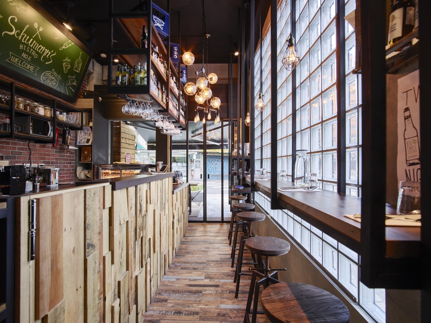 從政大紅到市區的「舒曼六號餐館」第二間店 - 南京店,就隱身在微風南京後巷、IKEA旁的巷弄內,門口種滿綠色植 物,還有指向德國的可愛路標;拉開門迎面而來的是帶有木頭質感的溫暖工業風,綠意從室外延伸到樓 梯間,坐在沙發吃享用美食,搭配剛剛好的自然光真的超享受!